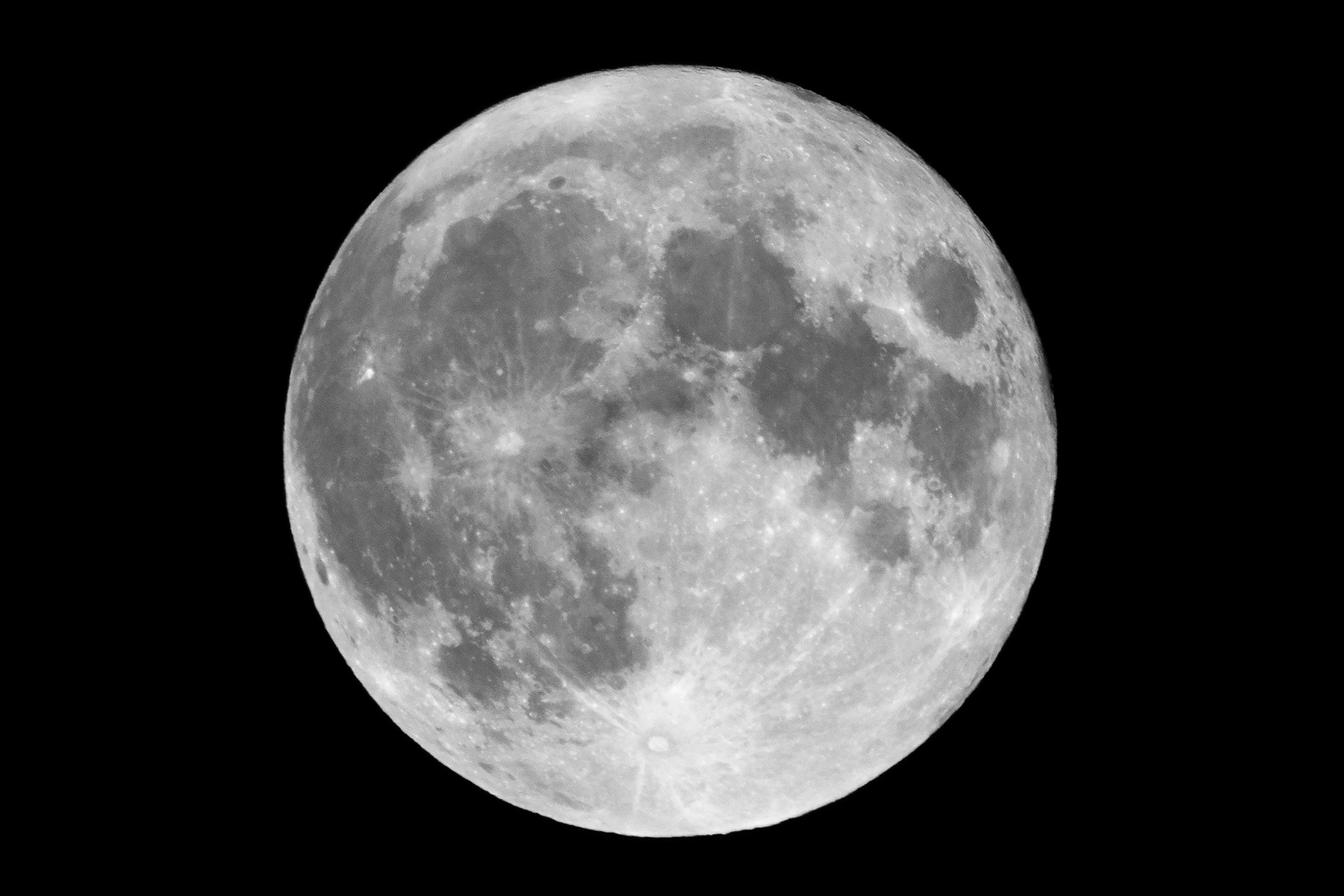 When the Moon is full, as seen from Earth, craters and other surface objects don’t show up well without the shadows which would be cast at other phases. The prominent bright crater close to the southern edge is Tycho Crater. It’s no bigger than many other craters, but its relative youth - thought to be about 100 million years old – hasn’t allowed sufficient time for it to darken as much as craters aged billions of years.