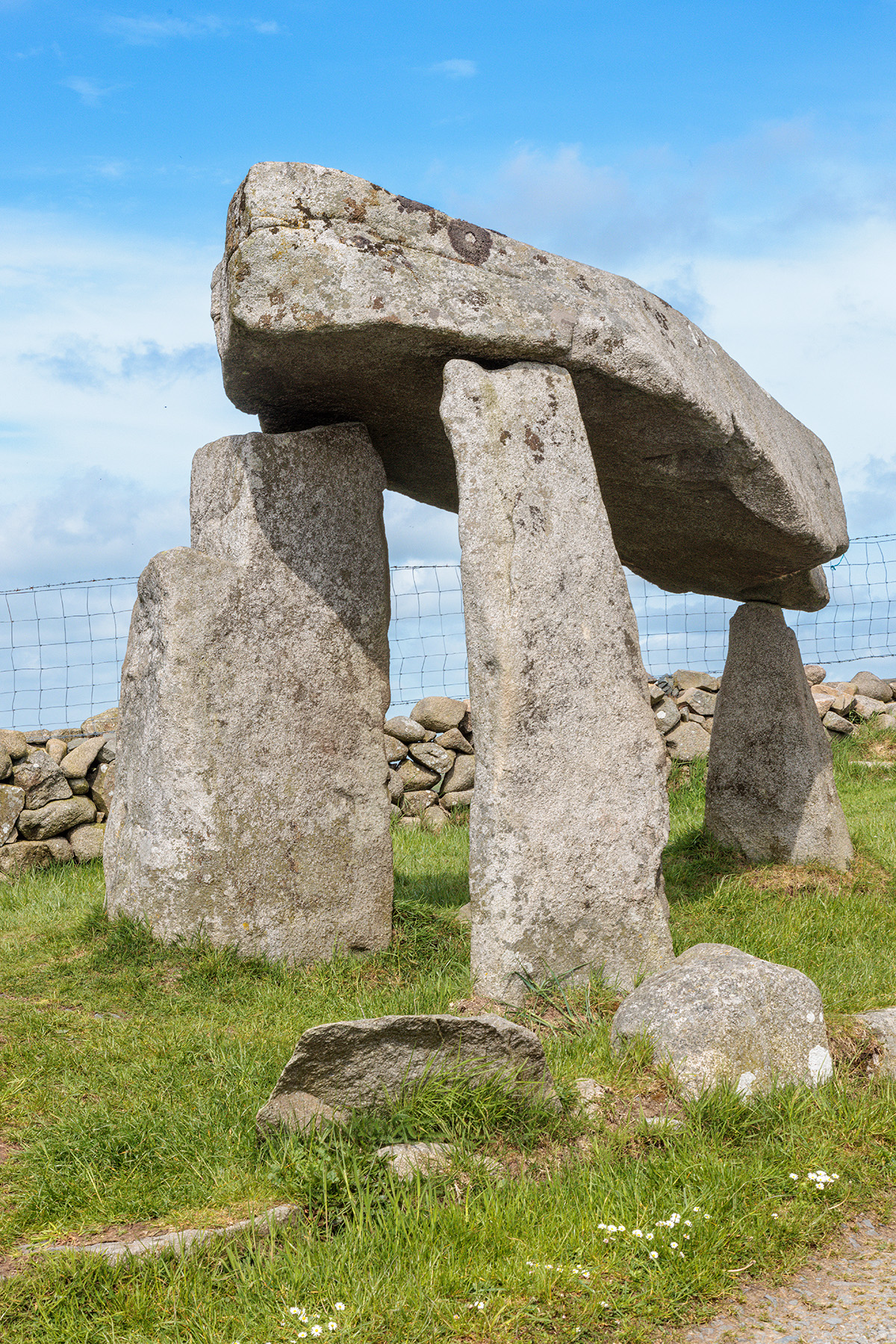 The Legananny Dolmen is a Neolithic portal tomb on the slopes of Slieve Croob, with good views of the Mourne Mountains to the south.