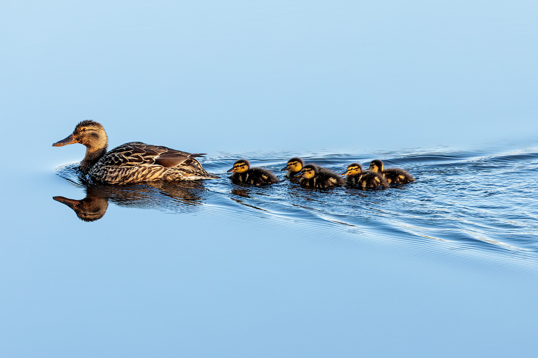 Mallard ducklings following in their mother’s wake on a small Scottish loch.