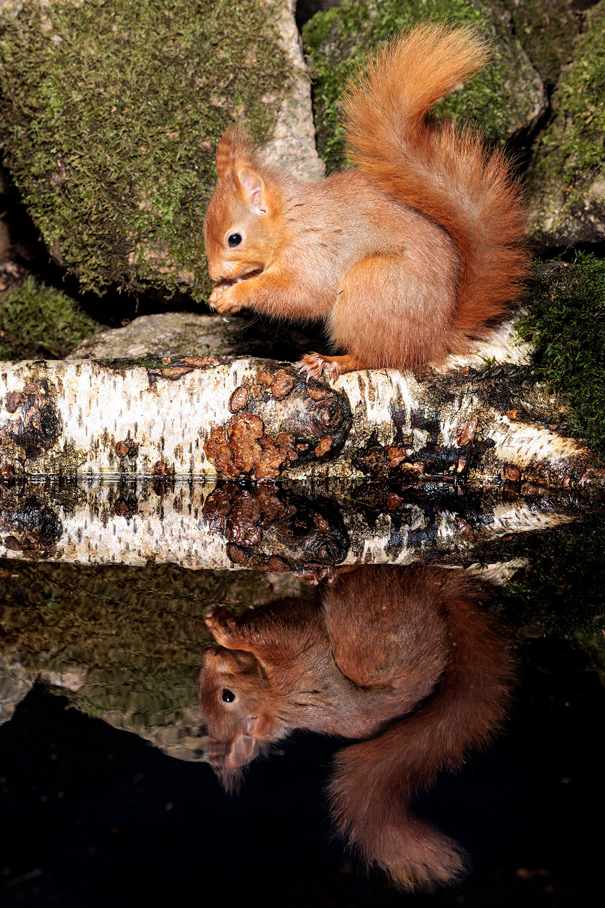 Photographing a red squirrel with its reflection may be slightly cliché, but everyone else is doing it, so why shouldn’t I?