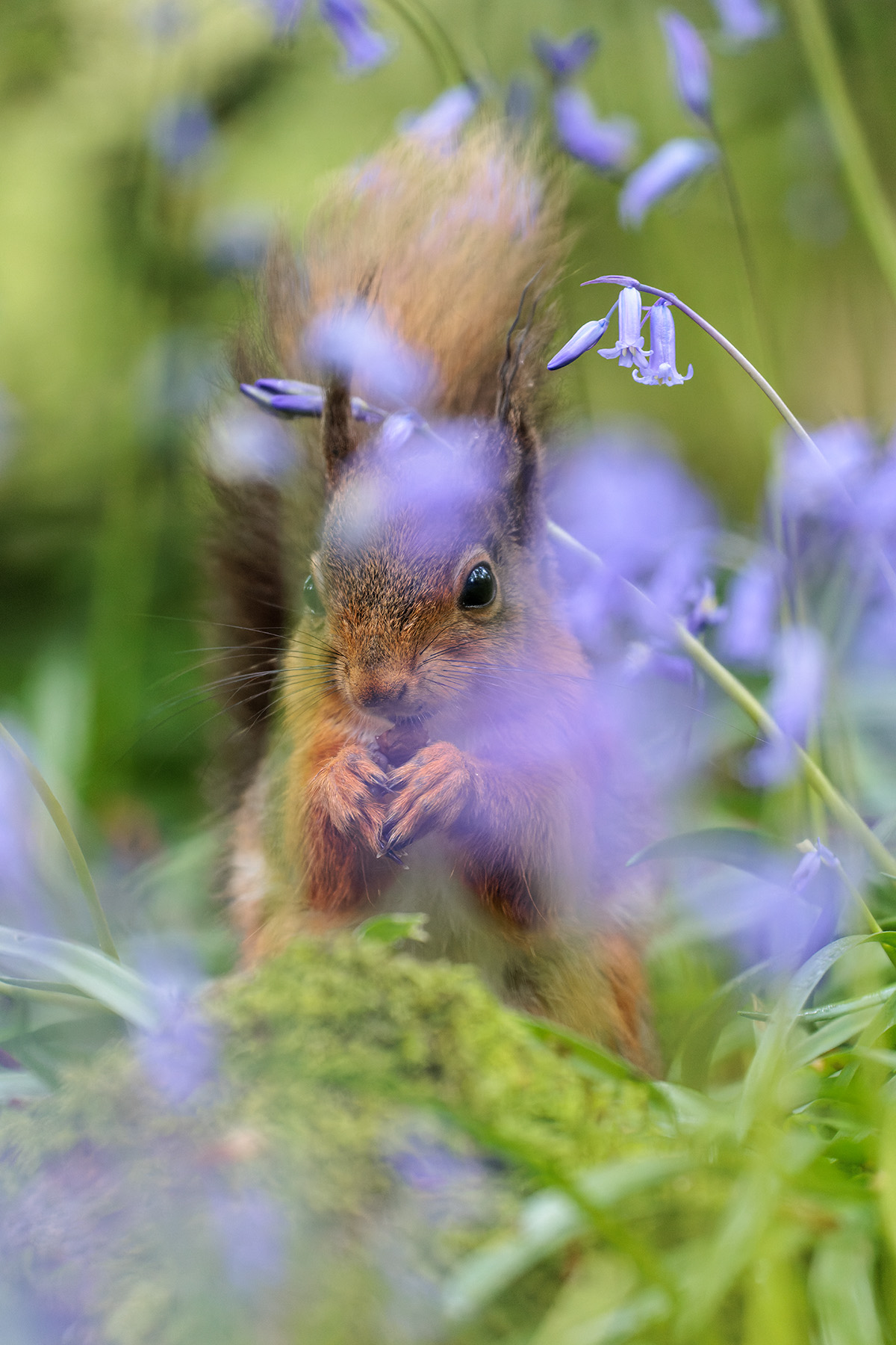 When red squirrels aren’t spending their waking hours burying food, they’re likely to be digging it up. This one has recovered a hazel nut which may have been cached by another squirrel long before the bluebells flowered.